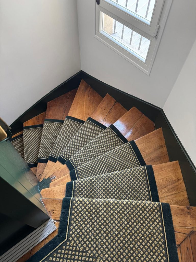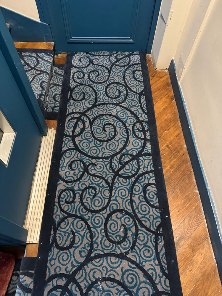 Tissés en France sur métiers jacquard Wilton traditionnels, les tapis de passage et de circulation tissés sur mesure et les tapis d’escalier fabriqués sur mesure.