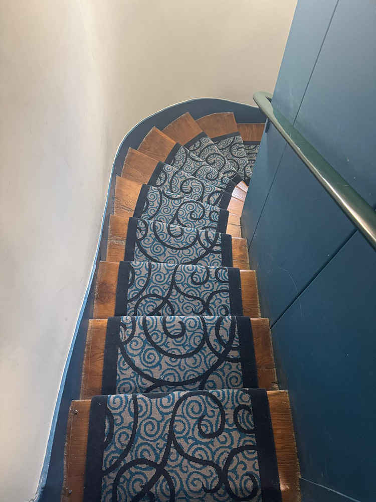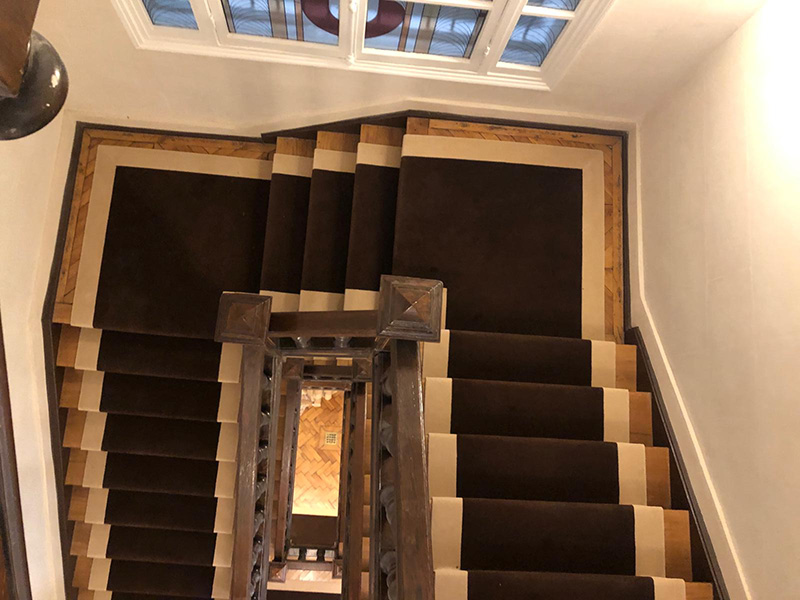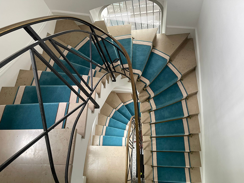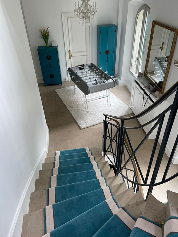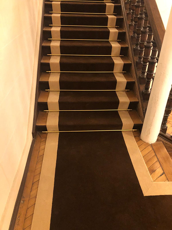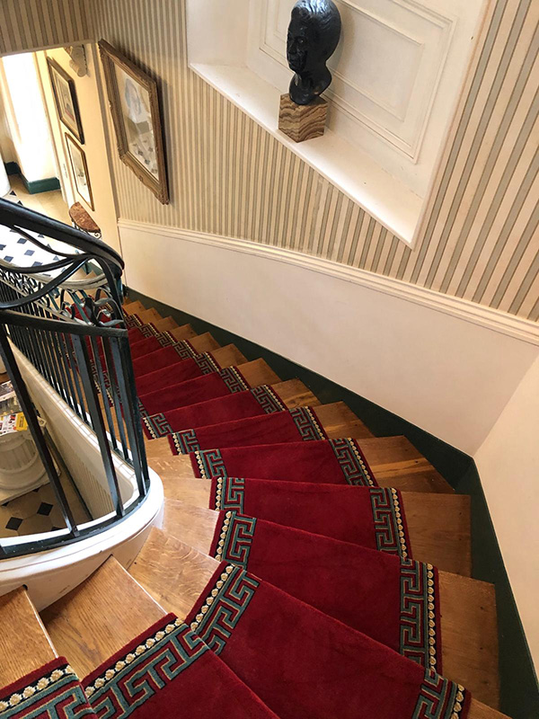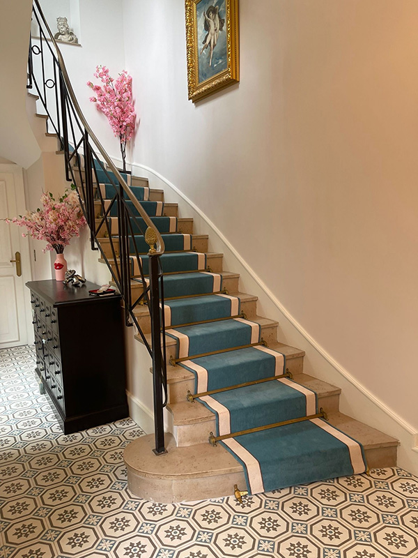 Tissés en France sur métiers jacquard Wilton traditionnels, les tapis de passage et de circulation tissés sur mesure et les tapis d’escalier fabriqués sur mesure.